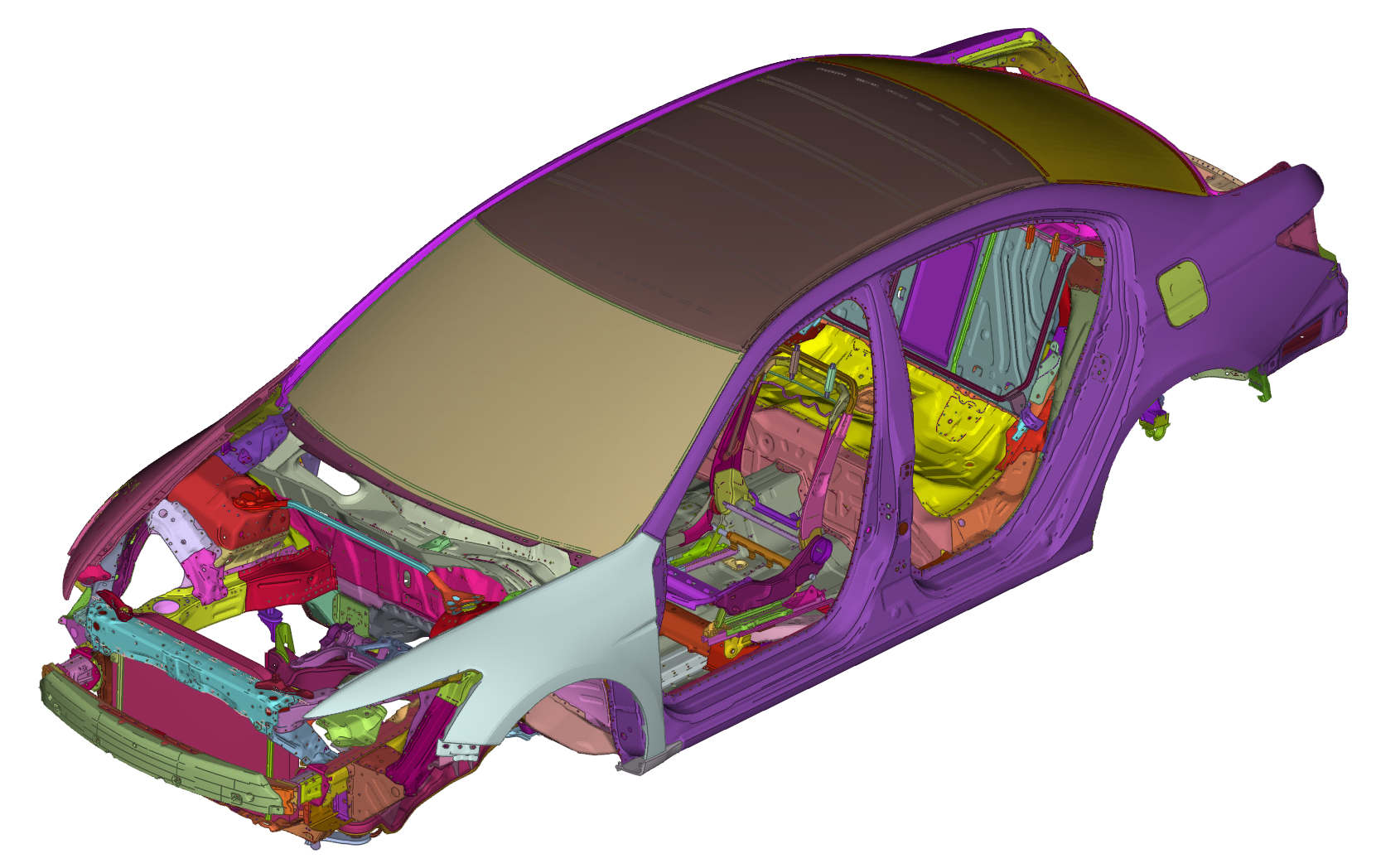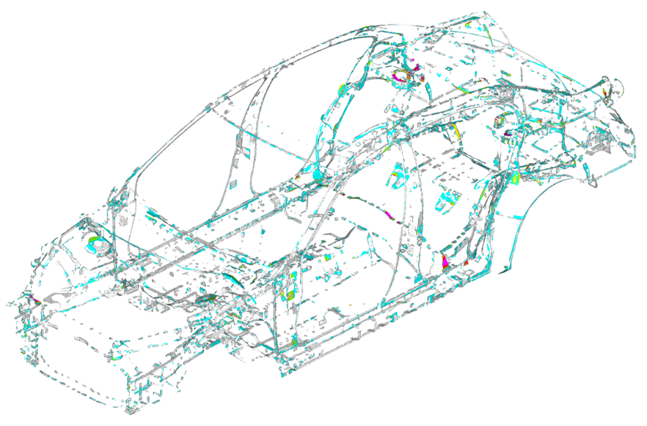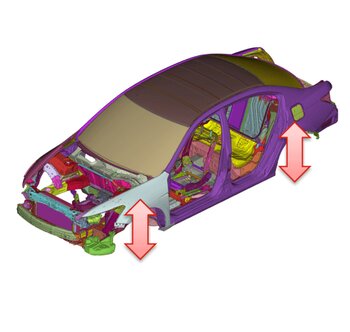 Based on MAMBA the CAE engineer is ready for the dynamic analysis of jointed structures, either for evaluation of the vibrational behavior or for improved fatigue assessment. The next picture illustrates the fatigue assessment results for the battery bracket of a passenger car as an exemplary use case.