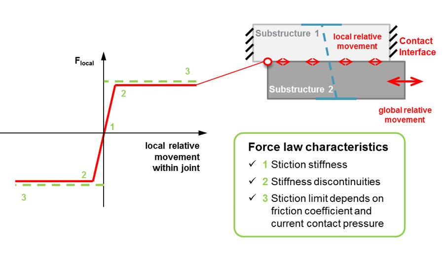 In case of jointed structures it is also essential that the reduction basis is capable to accurately capture the local displacements due to the occurring contact stresses. This is achieved by an additional set of trial vectors. These so called joint interface or contact modes are formulated to reproduce the local deformations due to the contact stresses. As the structure is capable to deform in a physical meaningful way the computed contact stresses are meaningful as well.